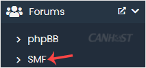 4. On the left side, locate the Forums category. Click on it and then on the SMF link that appears.