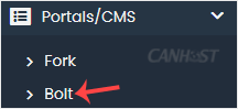 4. On the left side, locate the Portal/CMS category. Click on it and then on the Bolt link that appears.